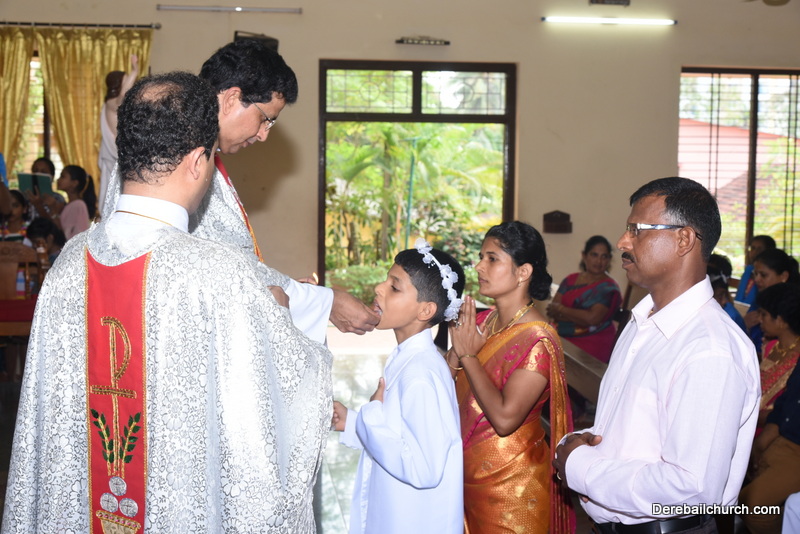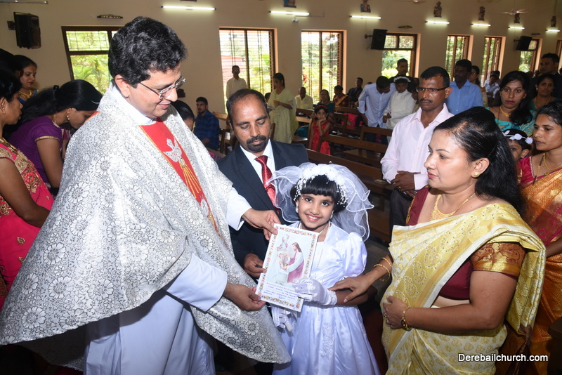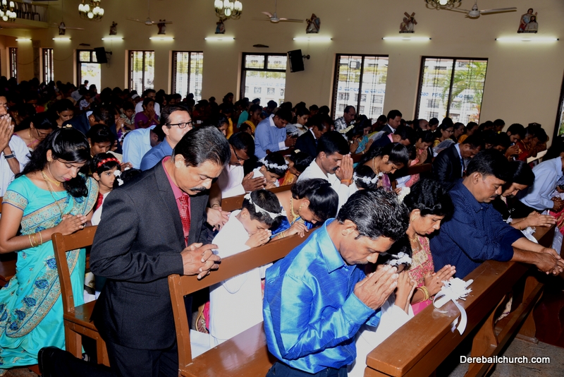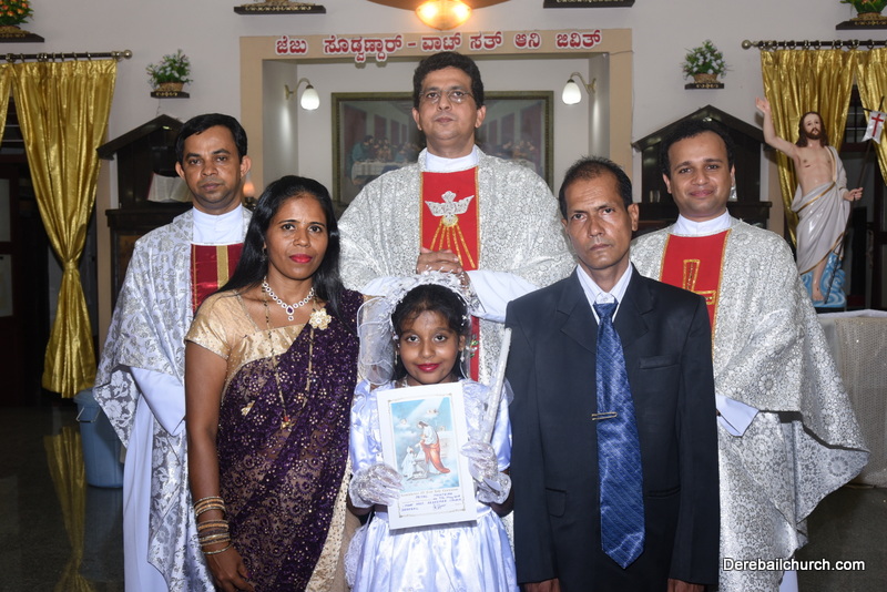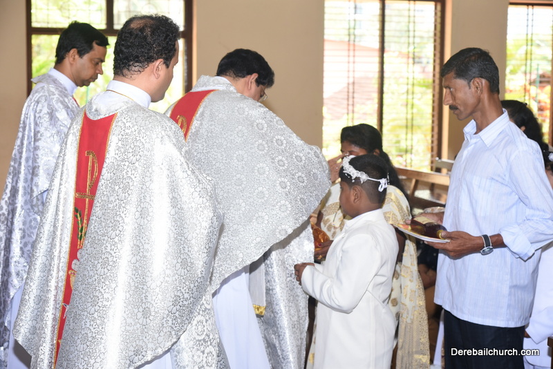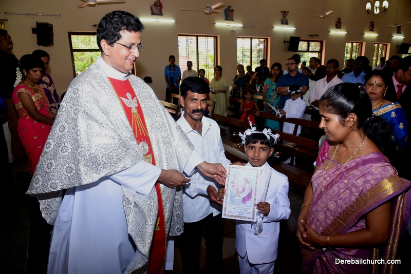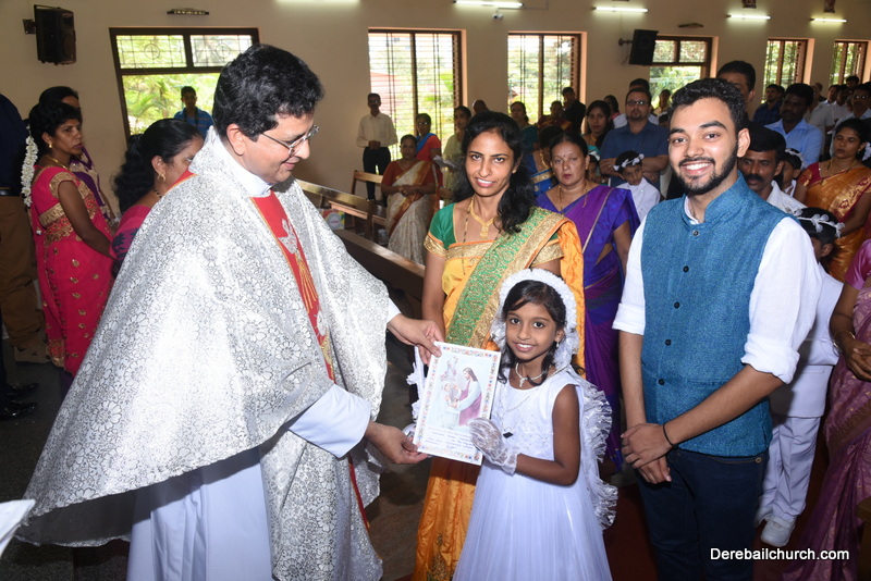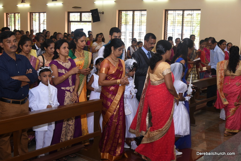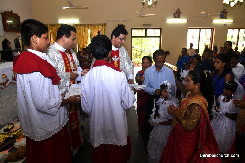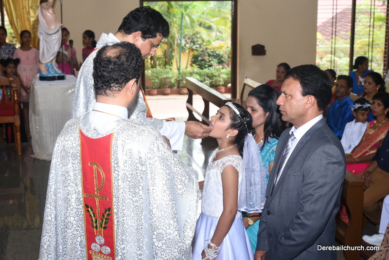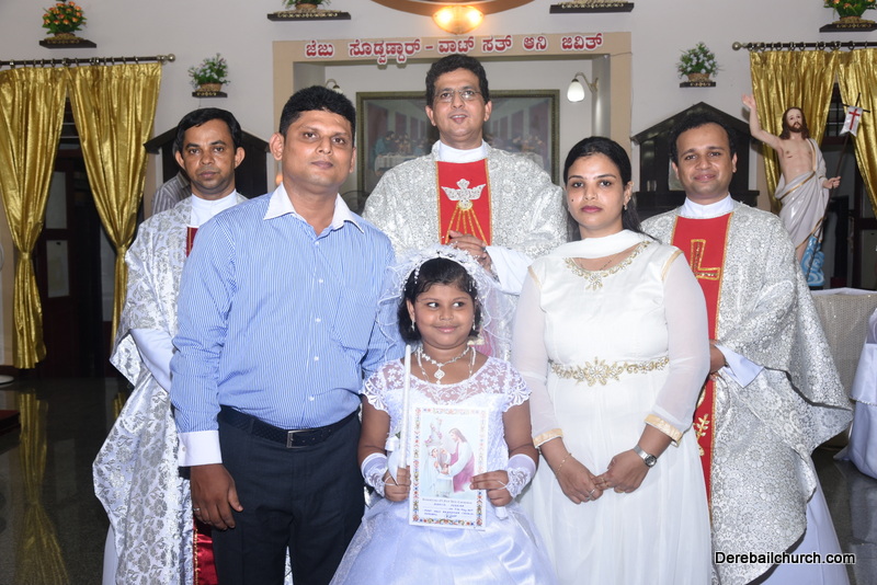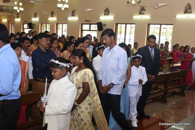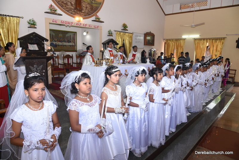 Every year on the first Sunday of May, the children of the parish receive their First Holy Communion. On the 7th of May, 2017 about 22 children welcomed Jesus into their hearts in the form of Bread and Wine. The ceremony was conducted during the 9.15 AM children's mass. Rev.Fr.Austin Peres concelebrated the mass with Fr.Gratian Alvares, Fr.Walter Pinto and Fr.Melwyn D'souza from Fr Mullers Hospital. The entire liturgy was carried out by the communicants. Also, a hymn was sung by the communicants just before receiving Jesus into their hearts.