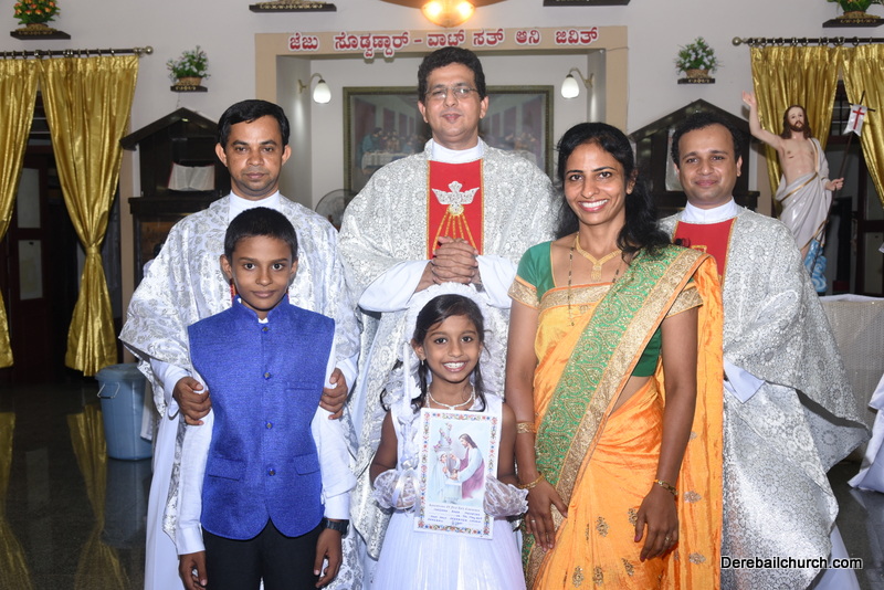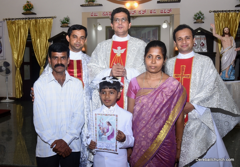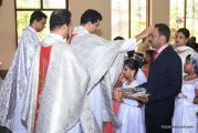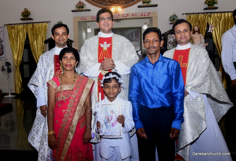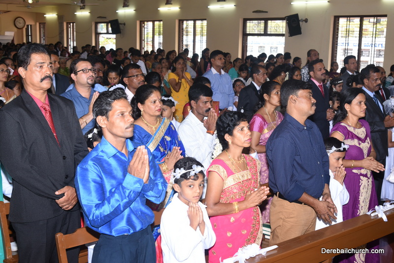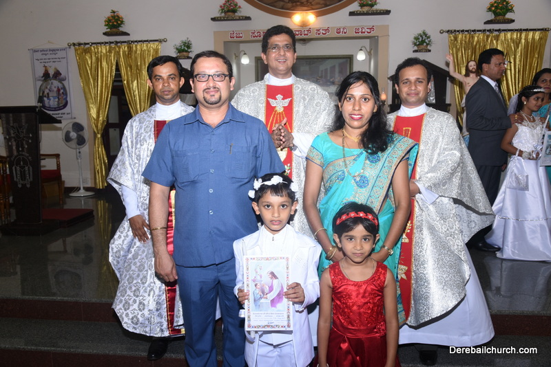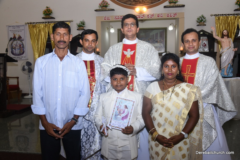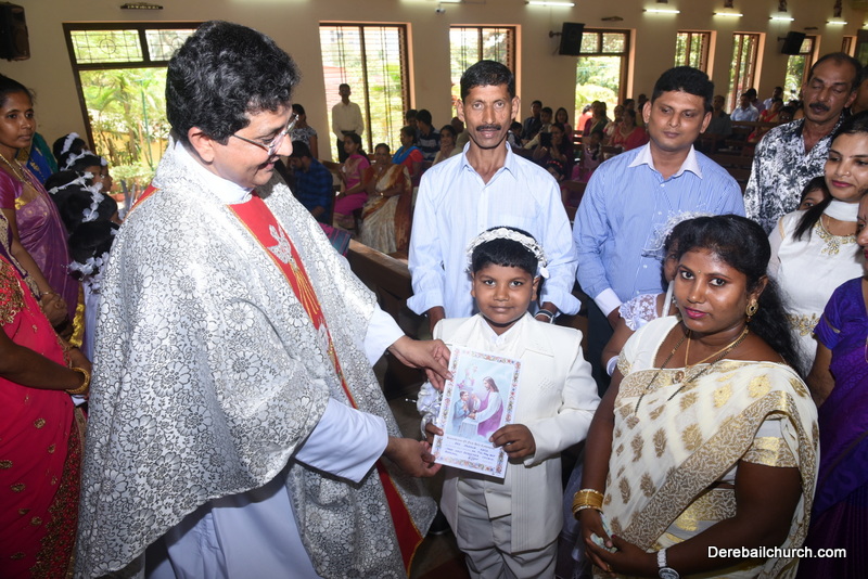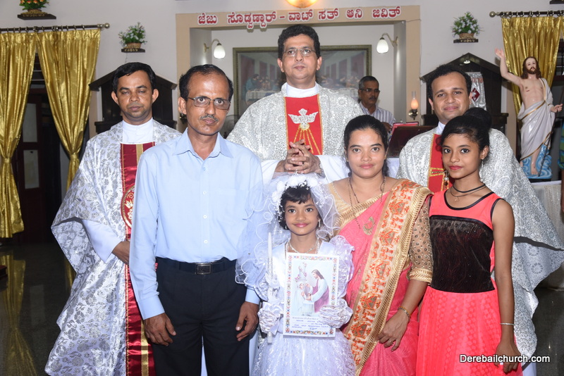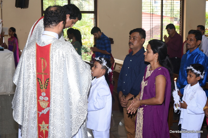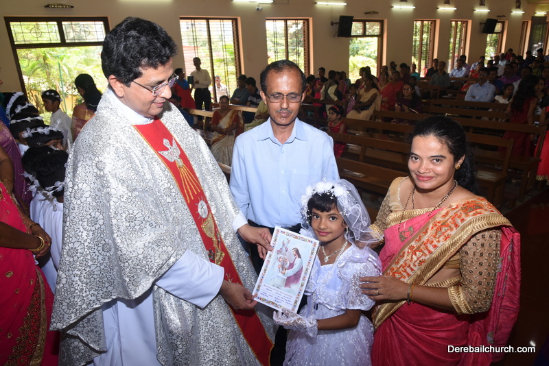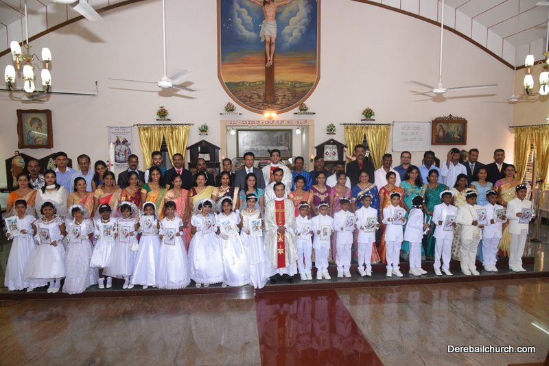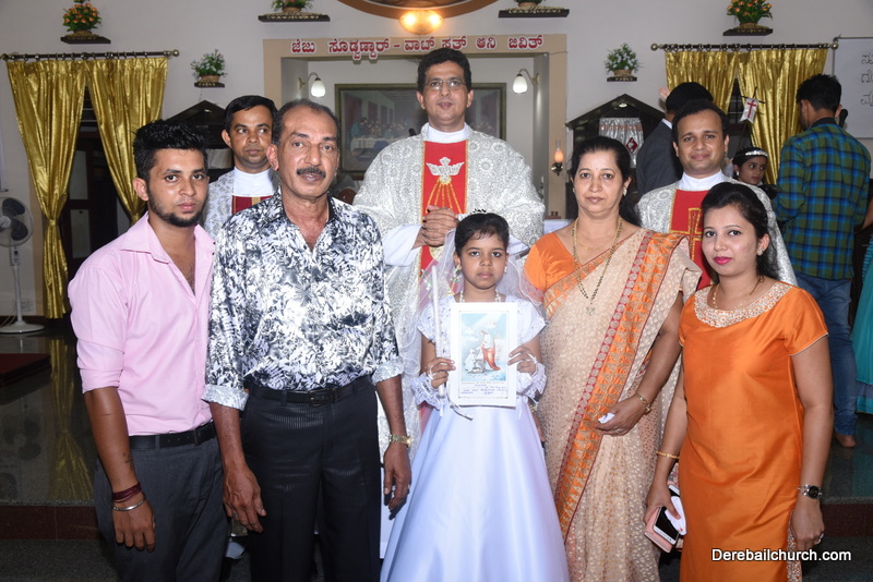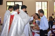 Every year on the first Sunday of May, the children of the parish receive their First Holy Communion. On the 7th of May, 2017 about 22 children welcomed Jesus into their hearts in the form of Bread and Wine. The ceremony was conducted during the 9.15 AM children's mass. Rev.Fr.Austin Peres concelebrated the mass with Fr.Gratian Alvares, Fr.Walter Pinto and Fr.Melwyn D'souza from Fr Mullers Hospital. The entire liturgy was carried out by the communicants. Also, a hymn was sung by the communicants just before receiving Jesus into their hearts.