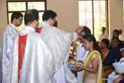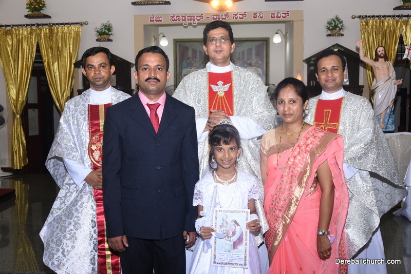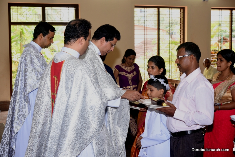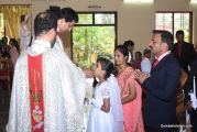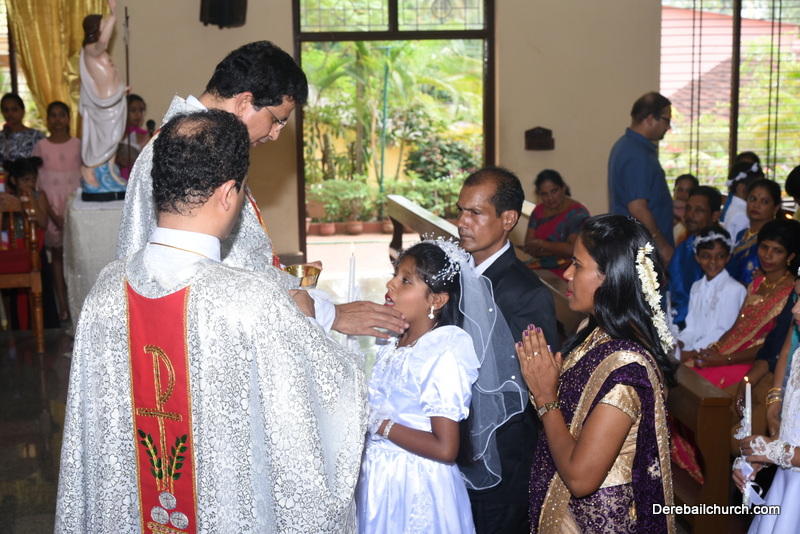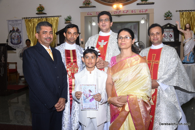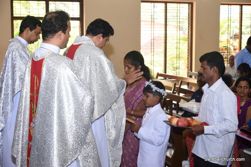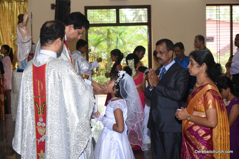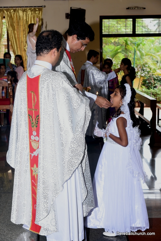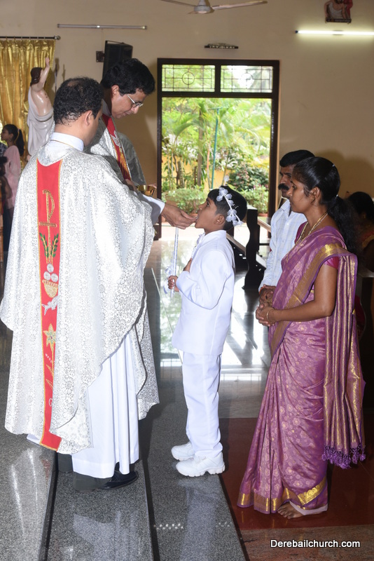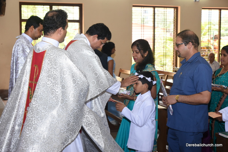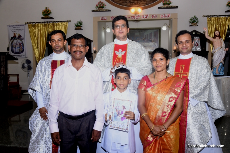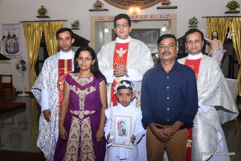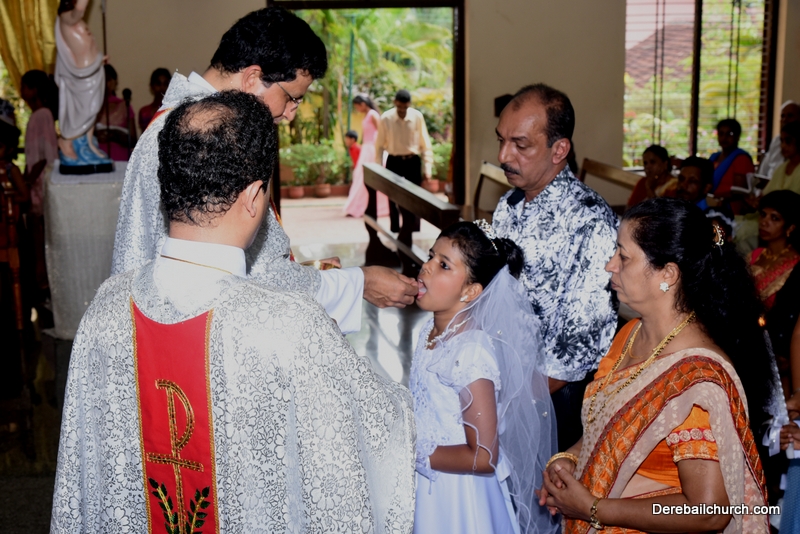 Every year on the first Sunday of May, the children of the parish receive their First Holy Communion. On the 7th of May, 2017 about 22 children welcomed Jesus into their hearts in the form of Bread and Wine. The ceremony was conducted during the 9.15 AM children's mass. Rev.Fr.Austin Peres concelebrated the mass with Fr.Gratian Alvares, Fr.Walter Pinto and Fr.Melwyn D'souza from Fr Mullers Hospital. The entire liturgy was carried out by the communicants. Also, a hymn was sung by the communicants just before receiving Jesus into their hearts.