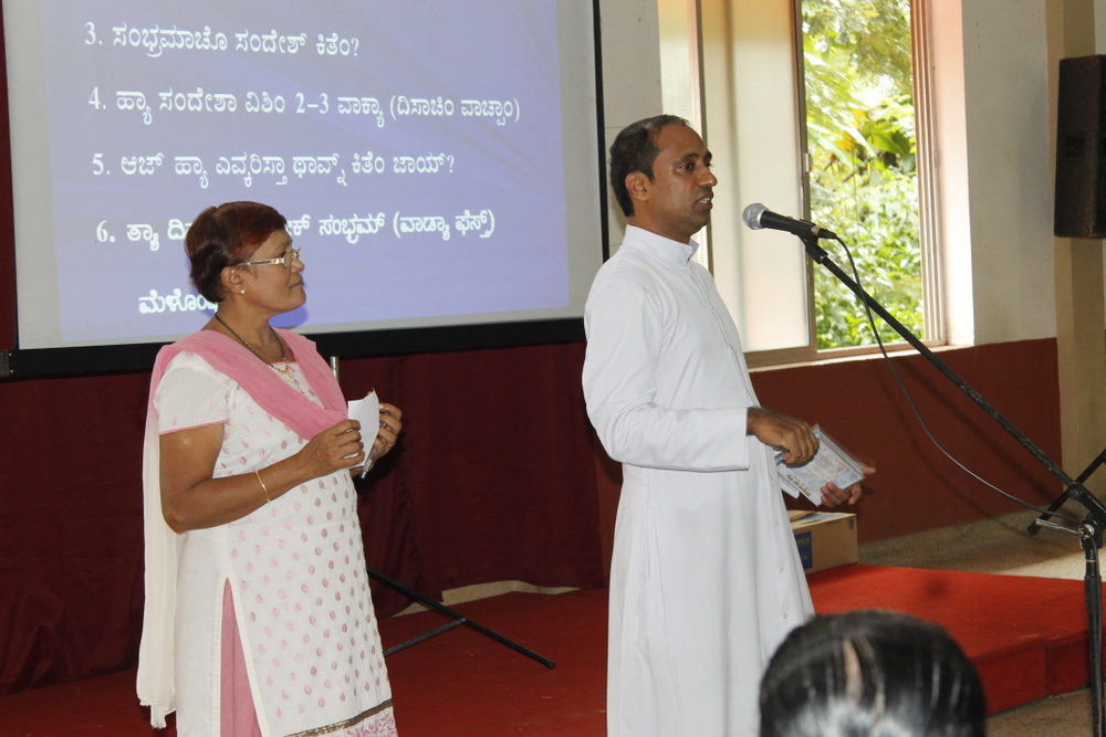 Speaking about the Mass, he explained that it has two parts - first The Liturgy of the Word and second the Liturgy of Eucharist.  Training was imparted on how to introduce the faithful to the mass of the day, how to do the readings, reciting or singing of the psalms,  guidelines and the order to be maintained while reading the prayer of the faithful or general intercessions and the type of  hymns to be chosen by the choir.
