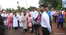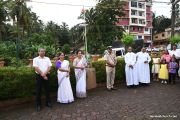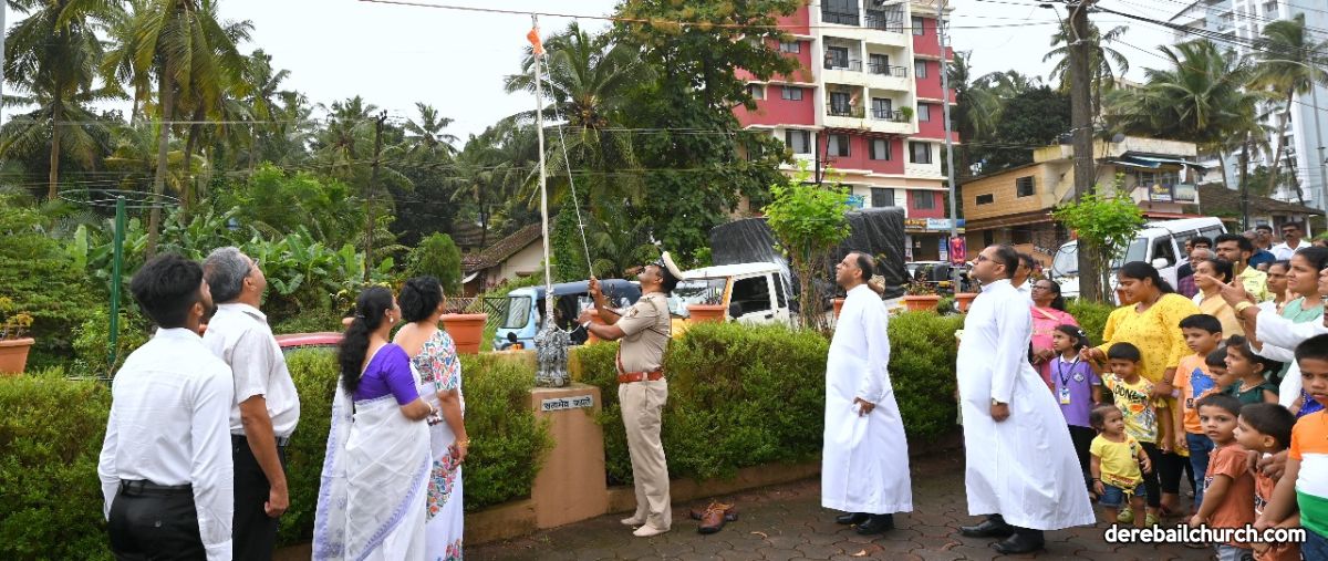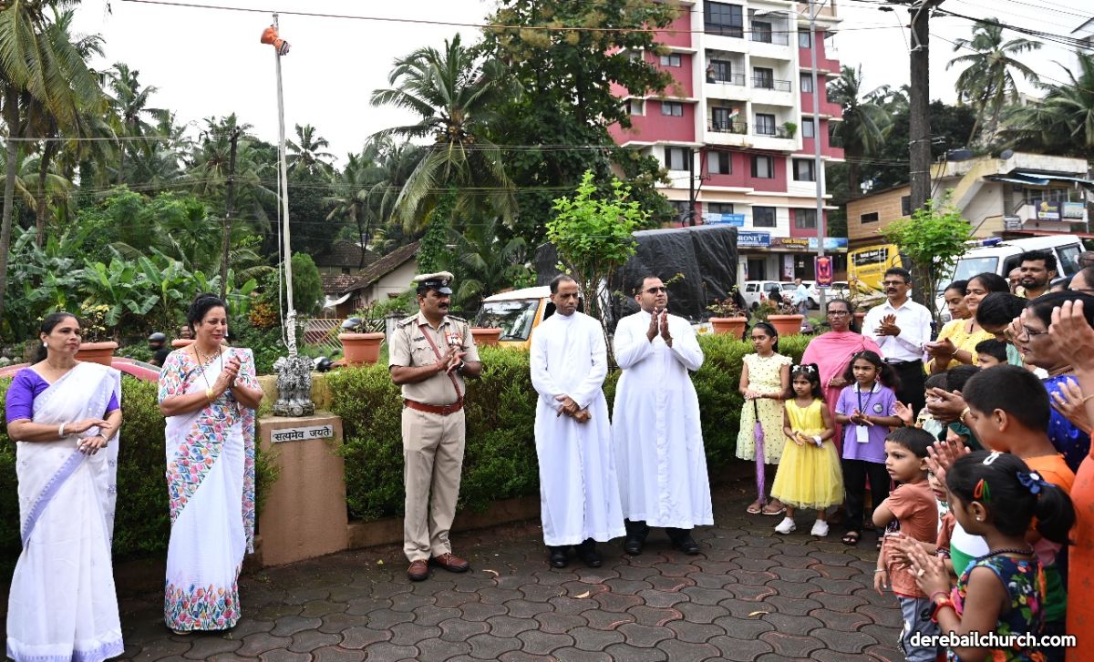 Following the 7:30 AM mass, the community gathered for a flag-raising ceremony. The event was graced by the presence of Rev. Fr Joseph Martis, the Parish Priest, Assistant Parish Priest Rev. Fr Kevin Dsouza, Parish Council Vice President Smt. Sheela D'Souza, Head of 21 Commissions Mr. Anil Patrao, and Catholic Sabha President Smt. Wilma Monteiro, along with the distinguished guest, Raghavendra M Byndoor, Officer at Kavoor Police Station.