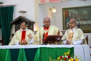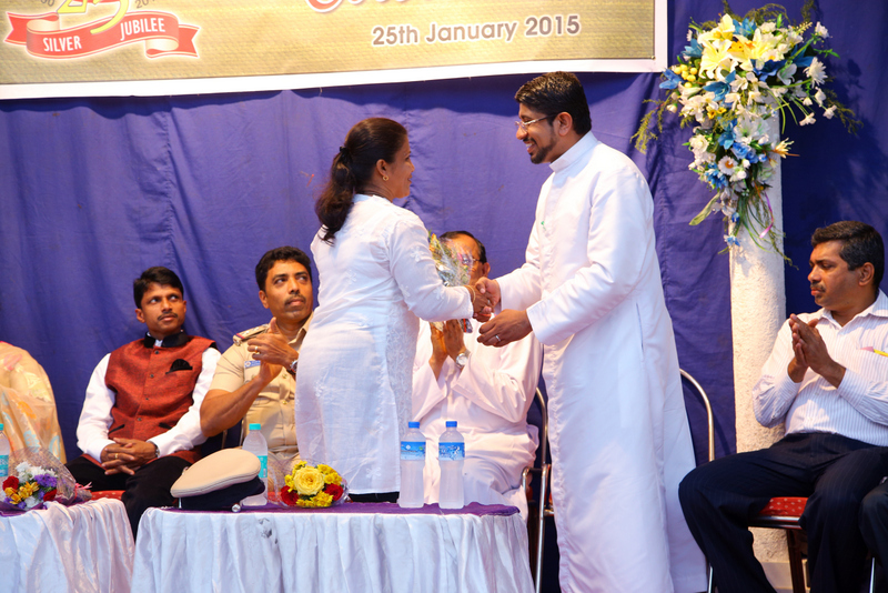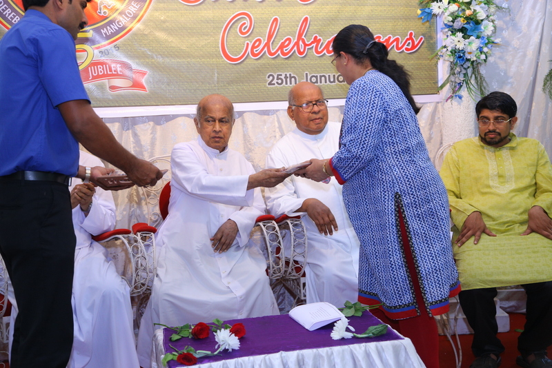 The stakes were set high and a huge stage had been set up for the valedictory function of the Jubilee celebrations. A huge crowd had gathered at the church school ground to witness this beautiful program. The program was presided by Rev.Dr.Peter D’souza. Mr.Valentine D’souza, (Inspector Of Police, CCB Mangalore), Mr.Vincent Prakash Carlo (Commonwealth Gold medalist in powerlifting), Rev.Fr.Vinod Lobo, Mr.Anil Patrao were the guests of honour for the day. Prizes were given away to the winners of various games and competitions.