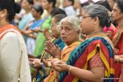 Vespers evening prayers of the Church began with Psalmody. The Word of God was read. Fr. Alwyn in his reflection emphasized on Prayer and the need of Prayer both Aesthetic prayer n prayer in Silence. The prayer of the faithful were read and this was was followed by Benediction of the sacrament. Following the vespers,the parishioners got into the festive mood. Fun filled games and a wide spread of delicacies added to the festive mood.