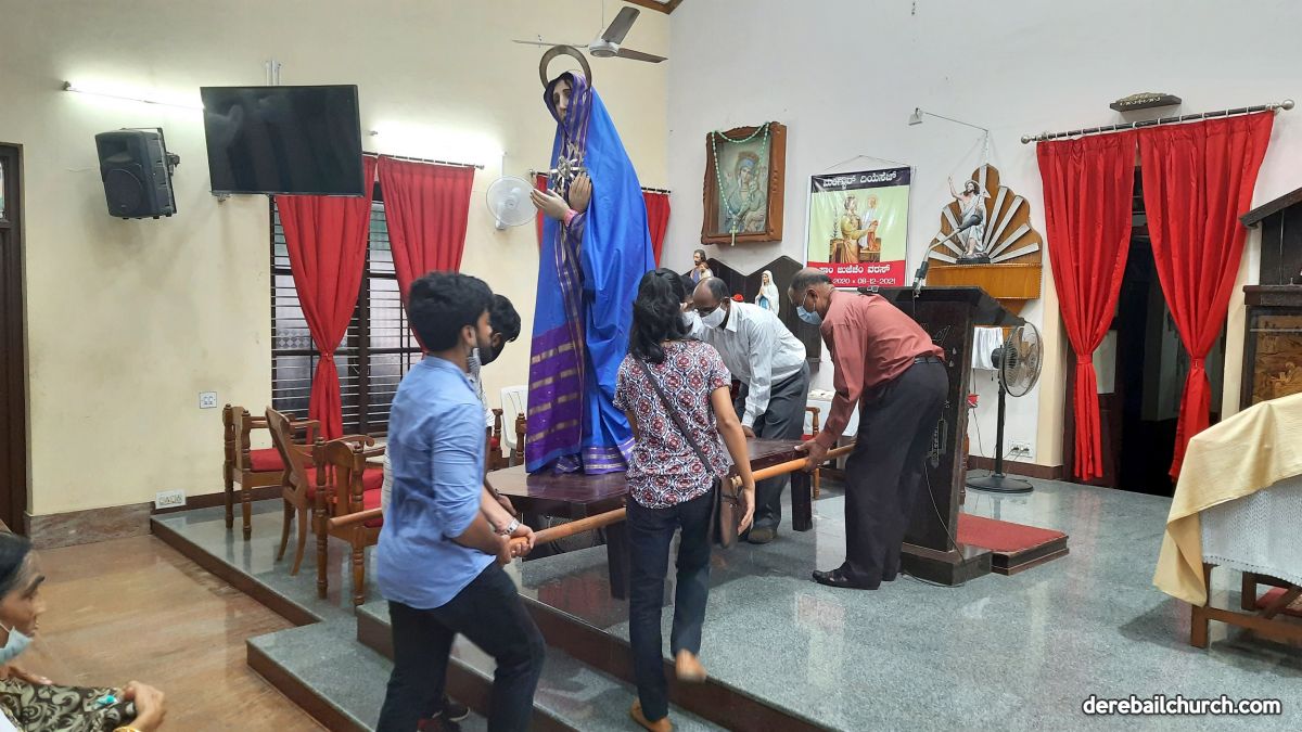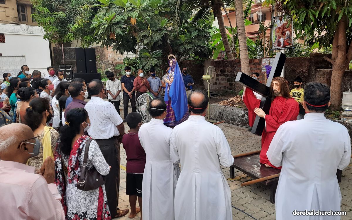 During the Way of the Cross, statue of Jesus carrying the Cross along with statue of Mother Mary were carried by the youth of Derebail parish from the 1st to the 14th station. Rev Fr Austin Peter Peres - Parish Priest of Derebail Parish, Rev Fr Gerald Francis Pinto - Residential Priest, Rev Fr Gratian Alvares - Parish Priest of Kupepadav and former residential priest of Derebail Parish and Derebail Parishioners took part in the Way of the Cross.