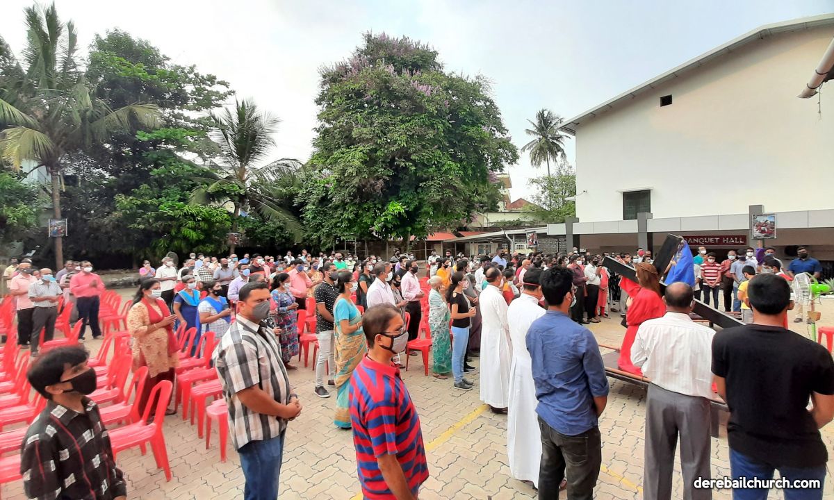 To commemorate Jesus' sacrifice on the cross and to begin the Holy Week on a prayerful note, a way of the cross was held at Most Holy Redeemer Church Derebail on Sunday, the 28th of March, 2021 at 5PM at the Holy Family School Grounds.