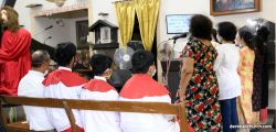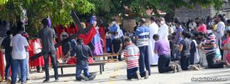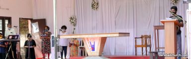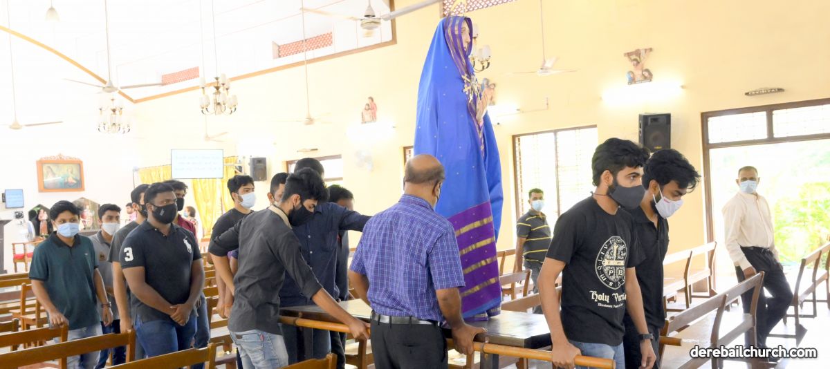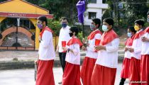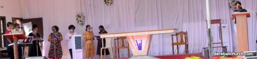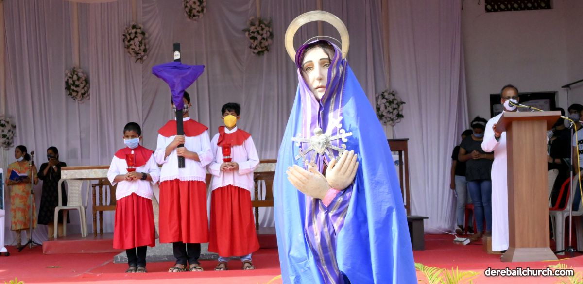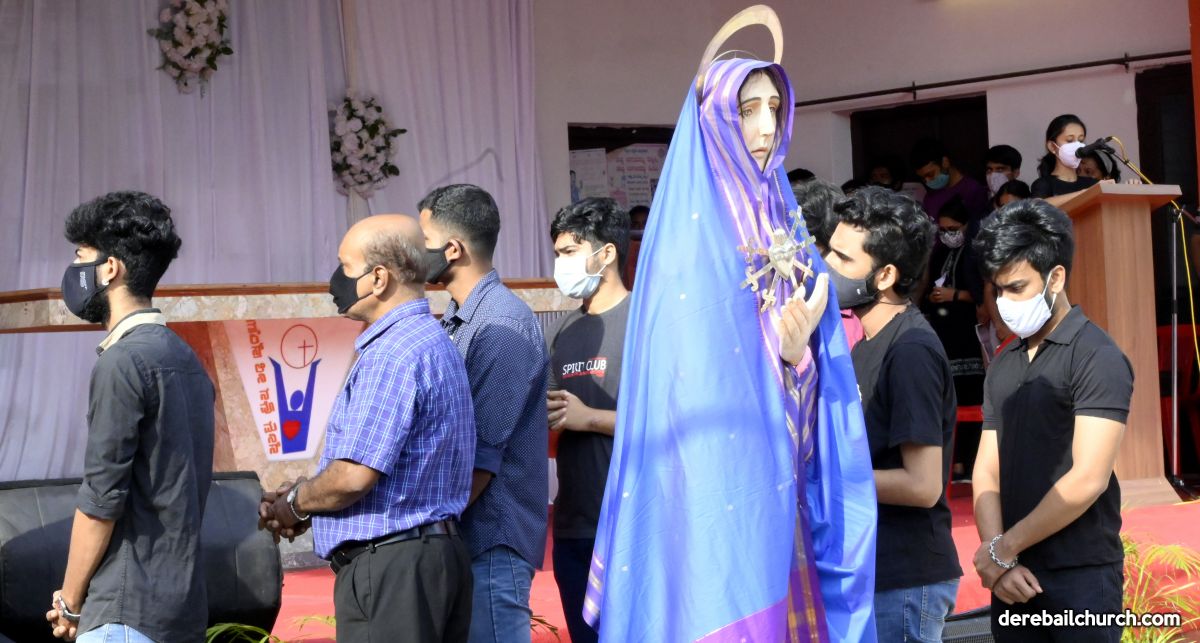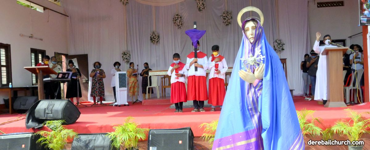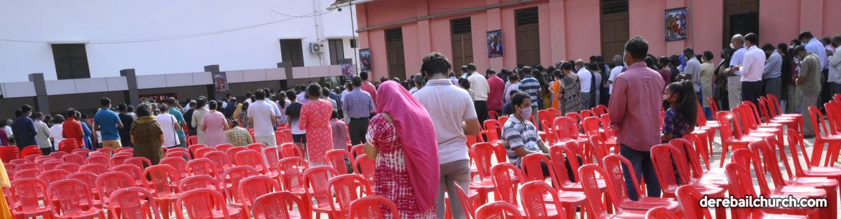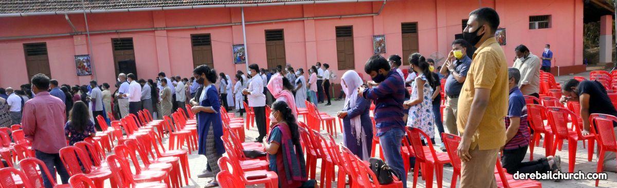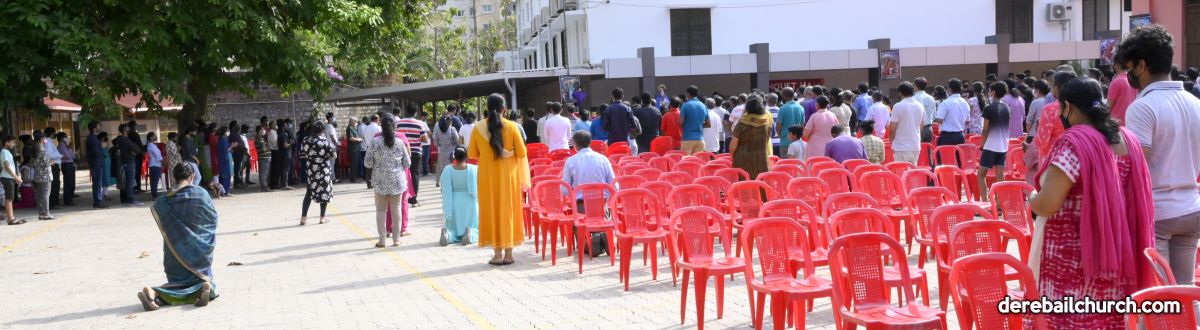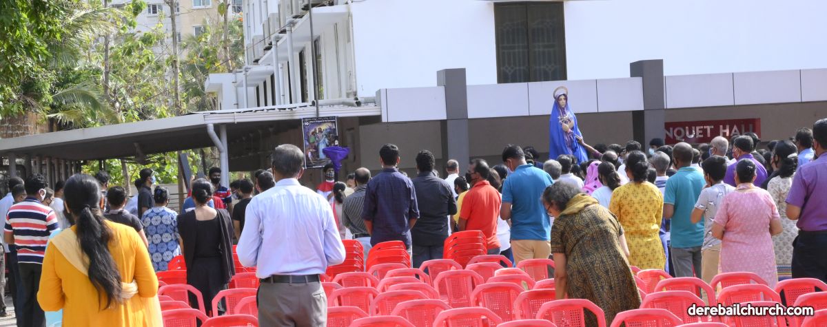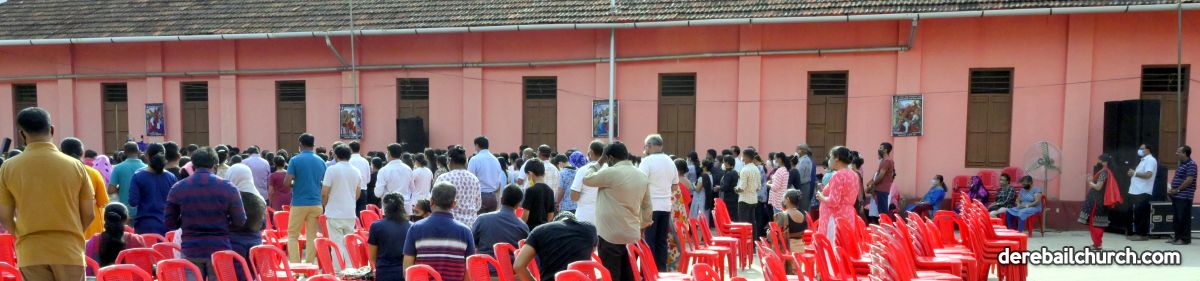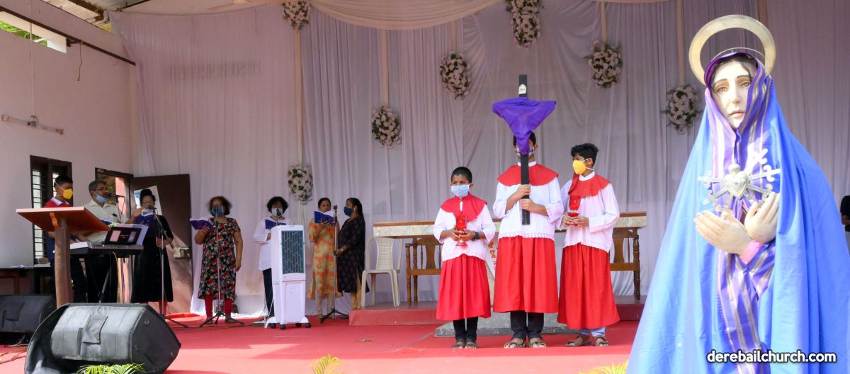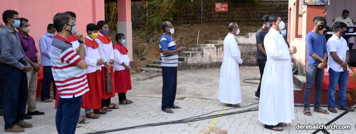 The Good Friday service at Most Holy Redeemer Church Derebail began at 8 AM with a prayer service. Rev. Fr. Austin Peres led the service where the devotees sang in unison Psalms and recited prayers. This was followed by the Way of the Cross at the Holy Family School Grounds. The Youth of the parish led the Way of the Cross. The parishioners took part in the commemoration of the Passion of Jesus with great devotion.