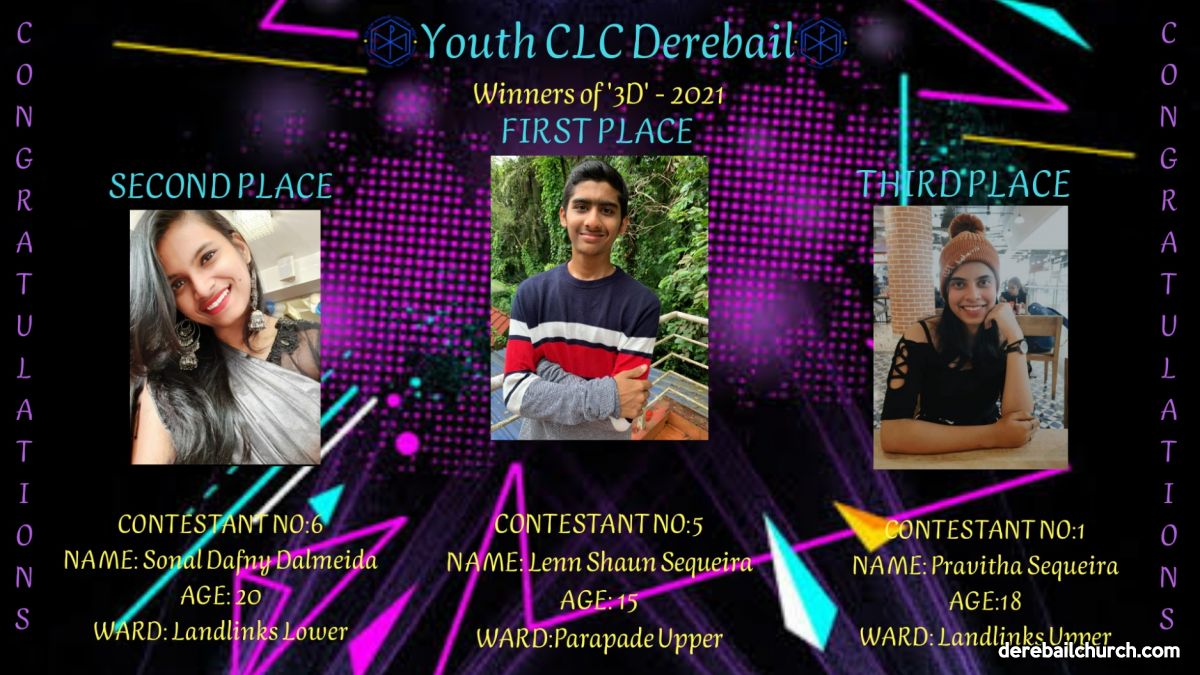 Christian Life Community-Youth , Derebail, had organised a virtual Dance Competition *Dance Derebail Dance 3D* for the youth of the parish. The response in terms of both participants and viewers turned out to be good. The results of the competition were declared on the 18th of July, 2021.